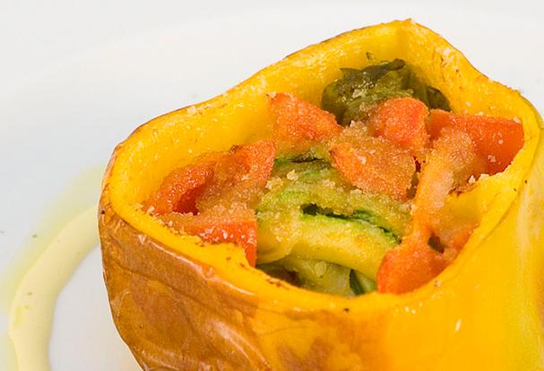 Prepare the peppers resting them close to the flame so as to scorch the skin from all sides. Then with the aid of a cloth remove the skin and, finally, remove the stalk and seeds.